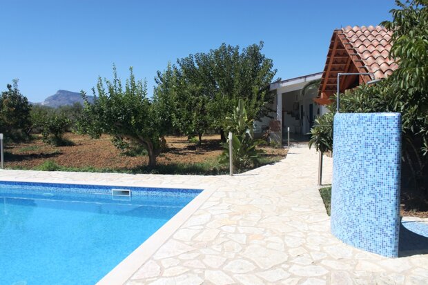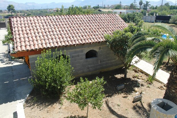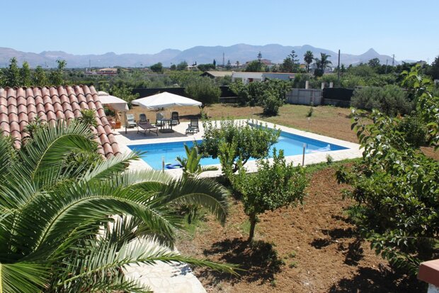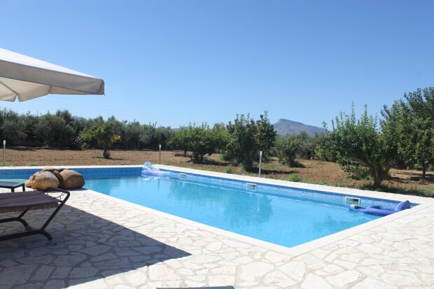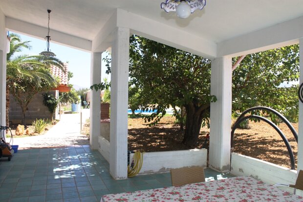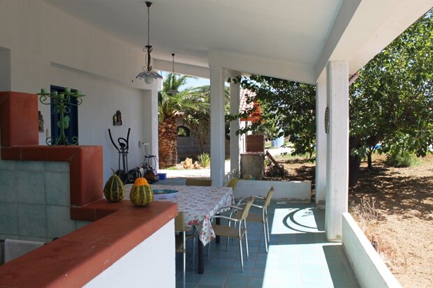 La villa è attorniata da mq. 6000 di terreno interamente pianeggiante, piantumato con 60 piante di ulivo e 70 piante di frutta fra cui limone, fico, albicocca, prugne, gelso, pero e nespolo.